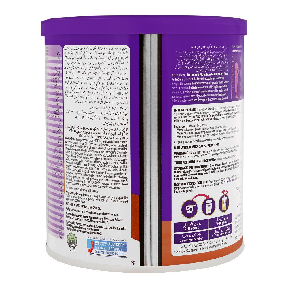 Pediasure Triplesure Chocolate Powder is the perfect solution for parents and caregivers who want to ensure that their children are getting the nutrients they need for optimal growth and development. This premium nutritional supplement is specifically designed to support the unique needs of children, especially picky eaters and those with special dietary requirements. With a triple protein complex, Pediasure Triplesure Chocolate Powder provides a rich source of high-quality proteins that are essential for muscle growth and repair. These proteins help children build strong and healthy bodies, ensuring that they have the energy and strength to keep up with their active lifestyles. In addition to the triple protein complex, this powder is also packed with essential vitamins and minerals. These nutrients are crucial for the proper functioning of the body and play a vital role in supporting overall health and well-being. From vitamin A for healthy vision to calcium for strong bones and teeth, Pediasure Triplesure Chocolate Powder provides a comprehensive blend of nutrients that children need to thrive. One of the standout features of this nutritional supplement is its delicious chocolate flavor. Let's face it, getting children to eat a balanced diet can be a challenge, especially when it comes to incorporating essential nutrients. However, with the irresistible taste of chocolate, Pediasure Triplesure Chocolate Powder makes it easier than ever to ensure that children are getting the nutrition they need. Kids will love the rich and creamy chocolate flavor, making it a treat that they look forward to every day. Pediasure Triplesure Chocolate Powder is a trusted choice for parents and caregivers who prioritize their children's well-being. With its carefully selected ingredients and comprehensive nutritional profile, this powder provides peace of mind, knowing that children are receiving the nutrients they need to grow and develop to their full potential So, if you're looking for a premium nutritional supplement that supports the growth and development of children, look no further than Pediasure Triplesure Chocolate Powder. With its triple protein complex, essential vitamins, and minerals, and delicious chocolate flavor, it's the perfect choice for picky eaters and children with special dietary needs. Make sure your child gets the complete and balanced nutrition they deserve with Pediasure Triplesure Chocolate Powder.