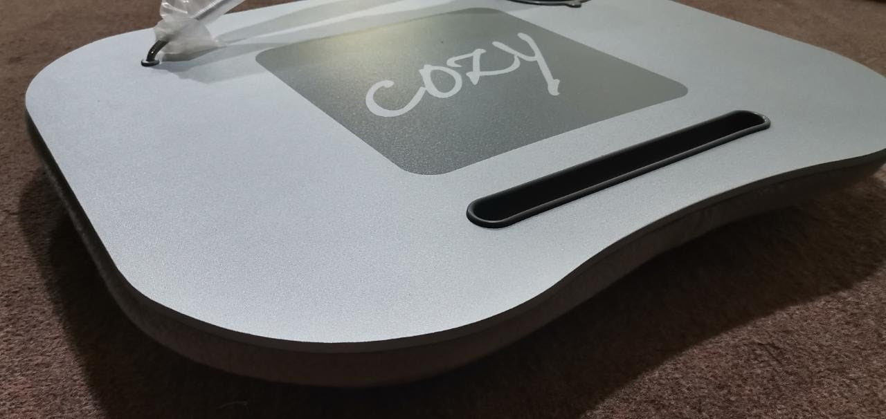• MULTI-FUNCTIONAL-With a spacious water-resistant surface, drink holder, pen slot, and a soft, fleece covered cushion filled with a foam microbeads, our lap desk tray is a comfortable and practical addition to your working, drawing, or reading space.