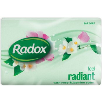 Radox Feel radiant bar soap. A soap and cleansing bar with rose & jasmine scent. Radox bar soap and bar of soap keeps your hands feeling clean and refreshed. Radox Feel Radiant with Rose & Jasmine Scent Bar Soap 125g. A rose garden in midsummer, trellises heavy with fragrant blooms.