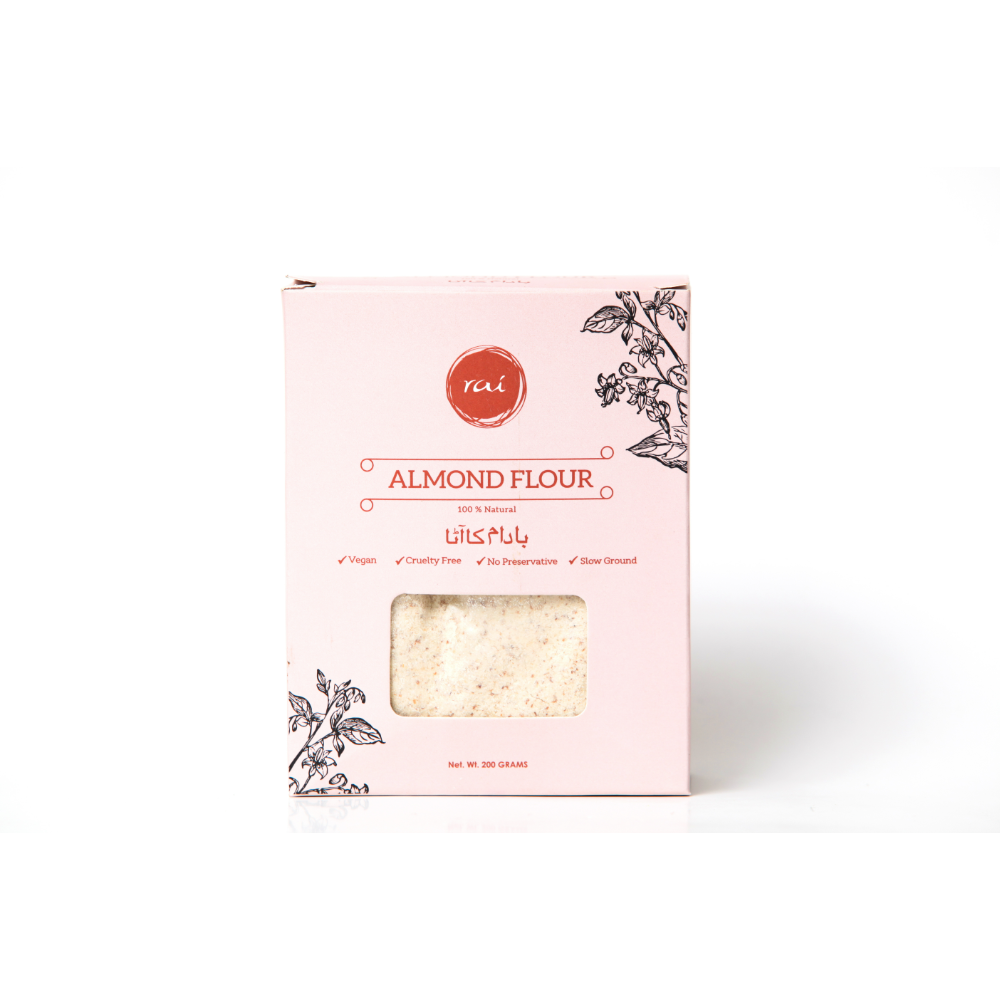 Raiƒ??s Almond flour is made from ground best quality sweet almond, it is usually made with blanched (no skin) almonds and can be made with non-blanched (with skin) almonds.