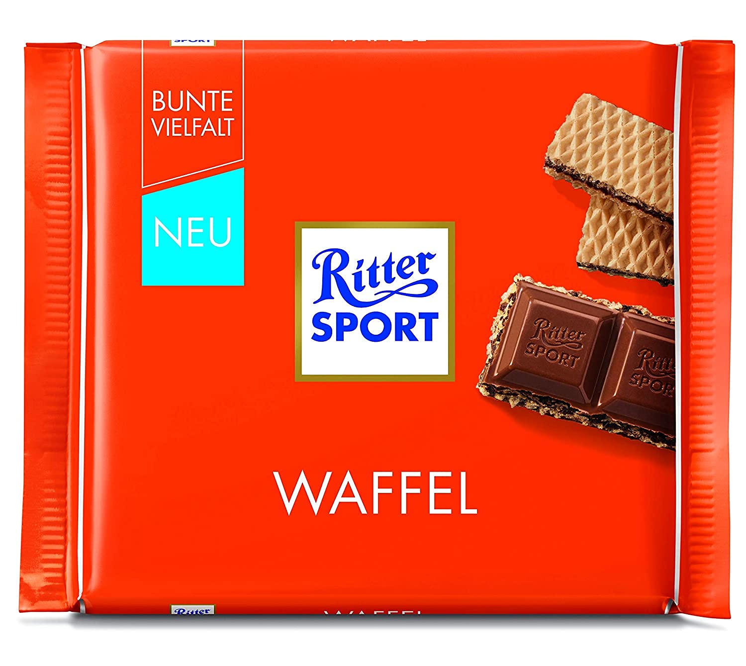 Ritter Sport Waffle Chocolate Bar is a 100g bar that combines smooth milk chocolate with crispy waffle pieces for a delightful crunch.