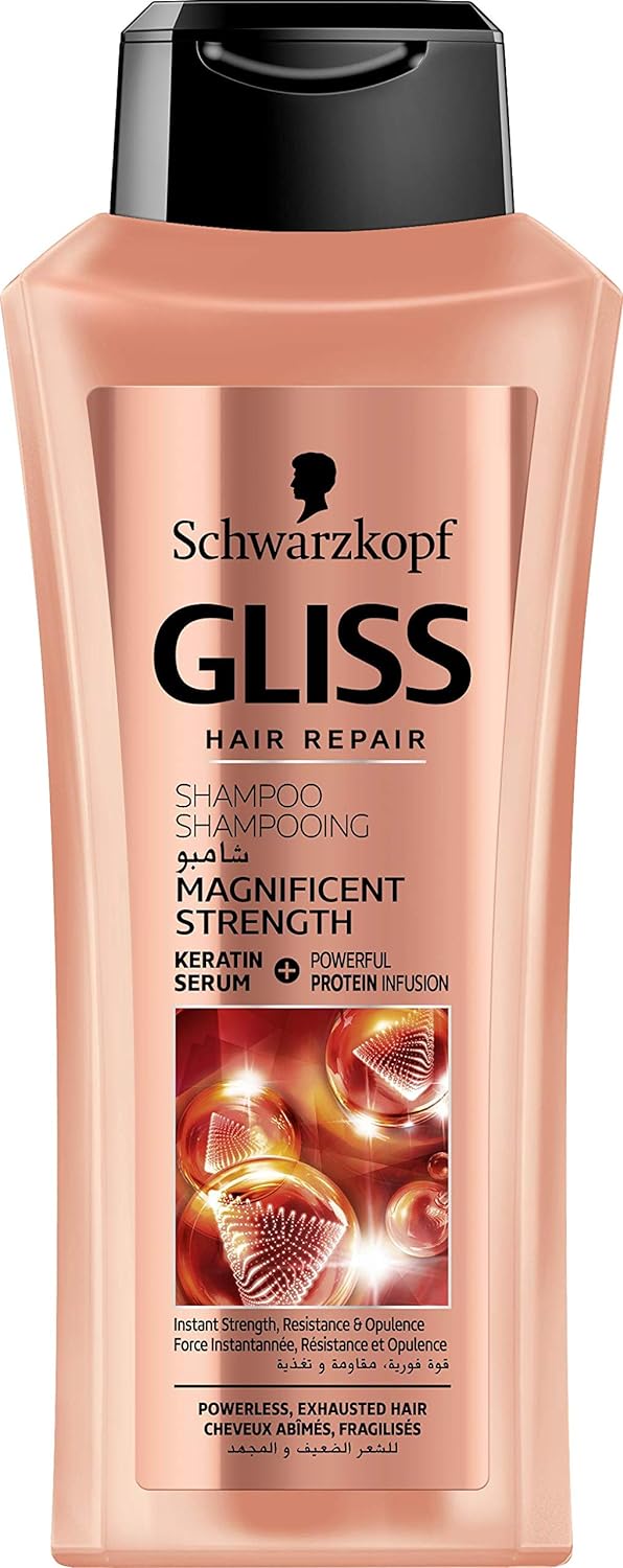 The Schwarzkopf Gliss Shampoo Hair Repair Magnificent Strength, with a voluminous capacity of 400ml, is a remarkable hair care product. This shampoo is specifically designed to repair and strengthen hair, providing exceptional results. Its advanced formula is enriched with essential nutrients and proteins that deeply nourish and revitalize the hair, leaving it visibly healthier and more resilient. The Schwarzkopf Gliss Shampoo Hair Repair Magnificent Strength is a testament to the brand's commitment to delivering high-quality hair care solutions. With its impressive capacity and outstanding performance, this shampoo is a must-have for those seeking to enhance the strength and vitality of their hair.