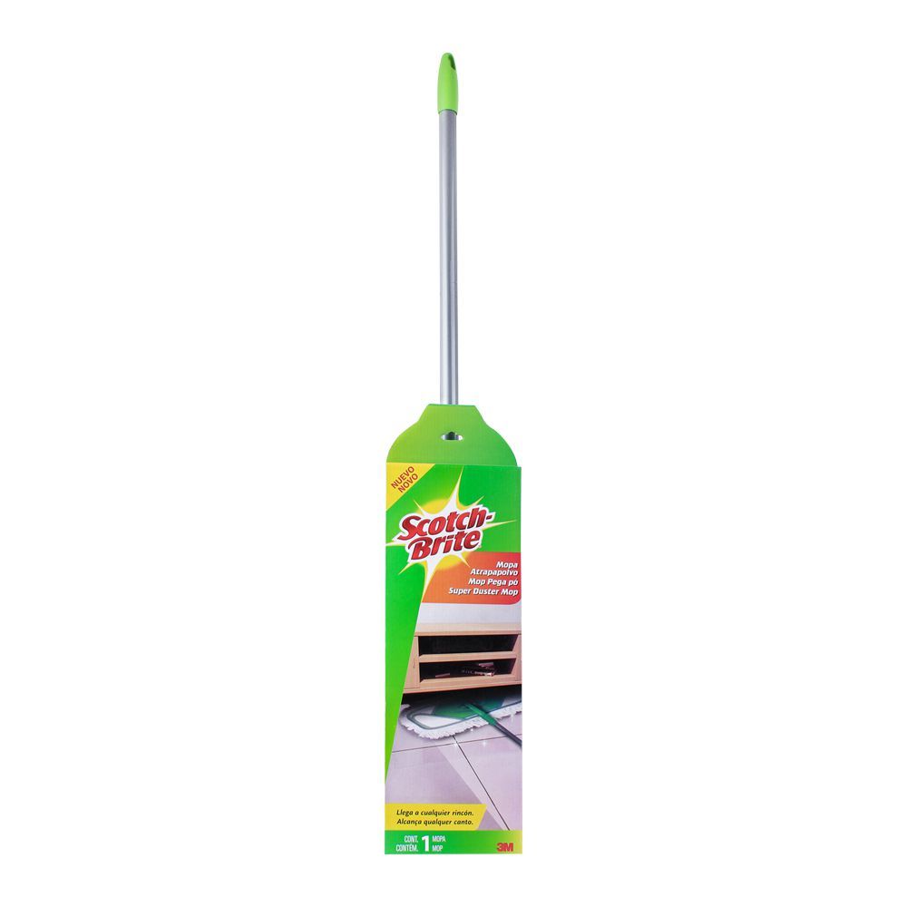 The mop head of the Scotch-Brite Super Duster Mop is typically made from high-quality microfiber material. Microfiber is known for its excellent dust-trapping properties. Microfiber is highly effective at capturing and holding onto dust, dirt, and allergens. The mop's microfiber head is designed to attract and lock in dust particles, leaving surfaces cleaner.