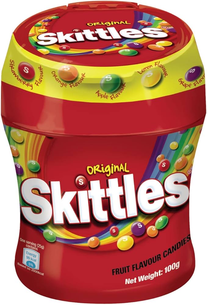 Skittles Fruit Flavour Candies are a 100g bag of colorful and fruity candies with a variety of flavors in every bite.