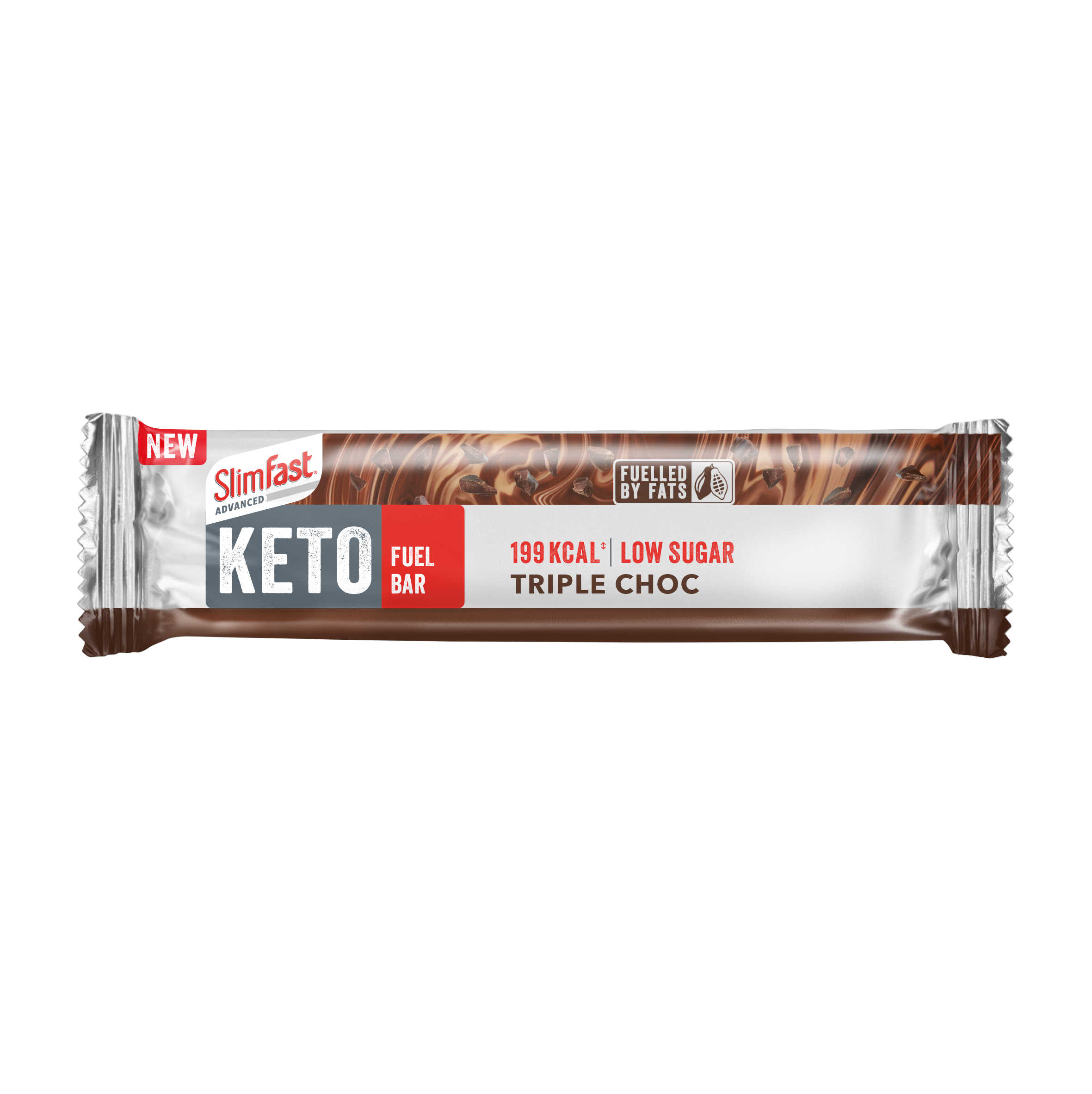 Slimfast Keto Fuel Bar in Triple Chocolate flavor is a 46g bar designed for those following a ketogenic diet. It's rich in chocolatey goodness and low in carbs.
