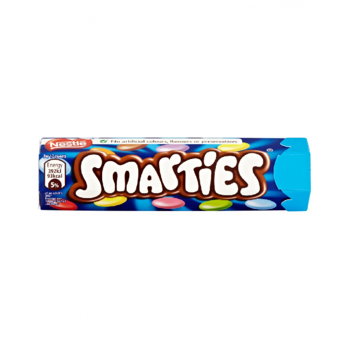 Smarties are colorful candy-coated chocolates that are popular with kids and adults alike. |