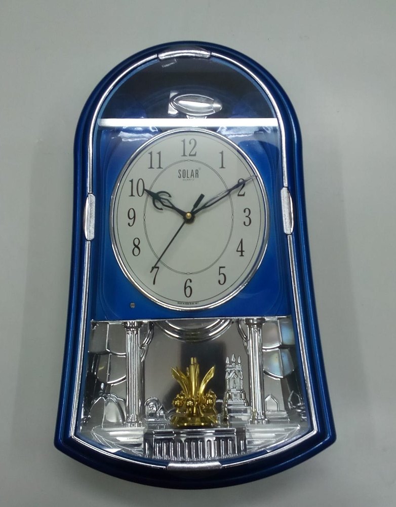 Solar Analog Blue Pendulum Plastic Wall Clock For Home: This solar-powered analog wall clock features a blue pendulum design, adding a touch of elegance to your home decor while helping you keep track of time.