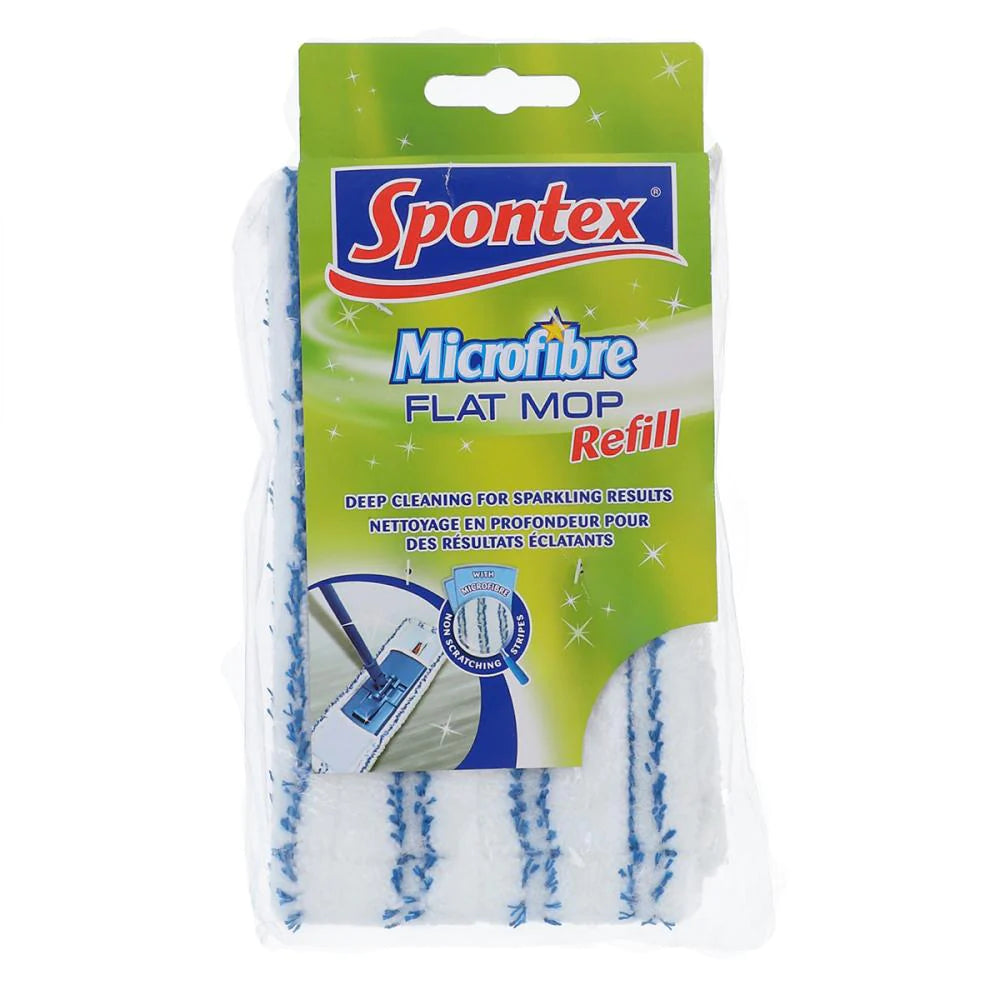 Spontex Microfibre Flat Mop refill is made of thousands of tiny fibres, so the number of contact points with the surface is greatly increased compared to a standard Mop. Machine washable up to 60°C. Dimensions: 44 x 14cm.