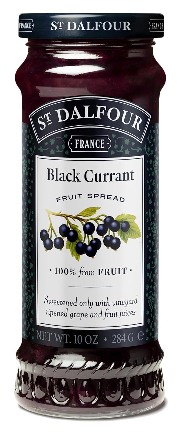 St.Dalfour No Sugar Added Jam Black Currant 284g: Experience the rich, tangy flavor of black currants with St.Dalfour No Sugar Added Jam. Packaged in a 284g jar, this jam is a delicious way to enjoy the essence of black currants without additional sugars.