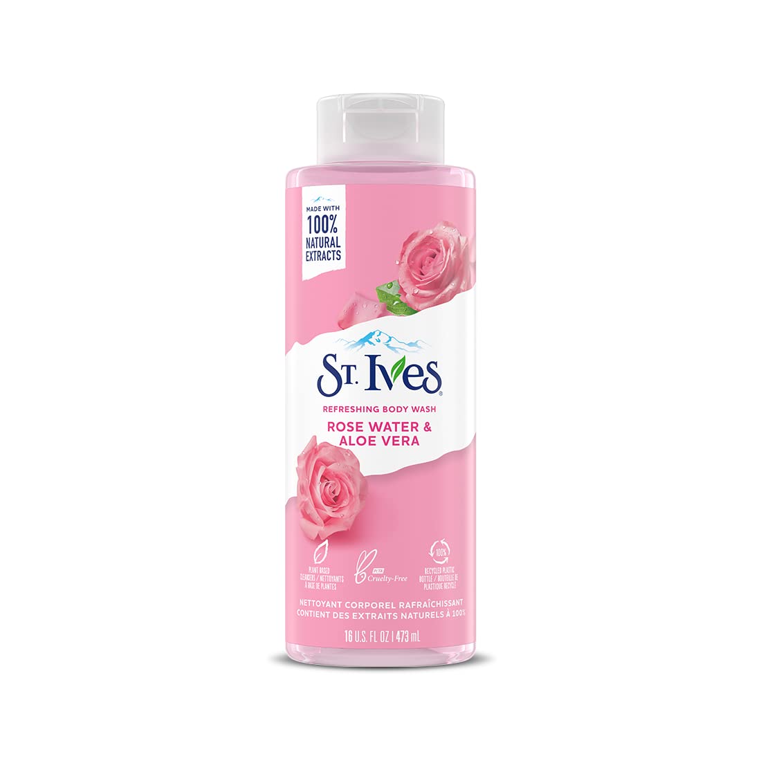 St. Ives Exfoliating Body Wash Rose Water Aloe Vera 473ml:This body wash by St. Ives is a luxurious blend of rose water and aloe vera.Rose water provides a gentle and soothing fragrance while aloe vera hydrates and calms the skin.The exfoliating beads in the formula help remove dead skin cells, leaving your skin soft and refreshed.
