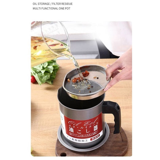 This is a kitchen grease container, made of durable material, can be used for a long term. The cooking oil pot comes with a handle, well suited to your hand and less prone to getting hot. It comes with a lid which will stop dust falling into oil, removable mesh strainer can filter out very small impurities in the oil. You can safely use your deep-fried oil thanks to our grease strainer container.