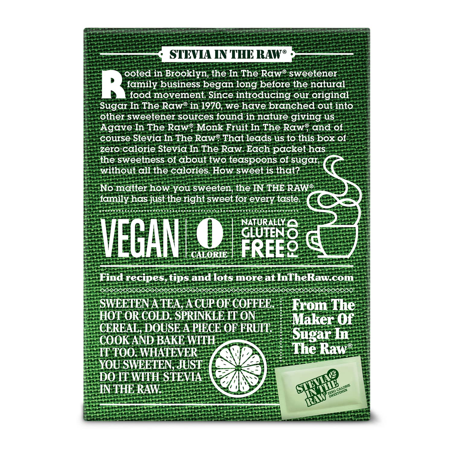 • Sweeten your hot and cold beverages, or sprinkle on your favorite recipes