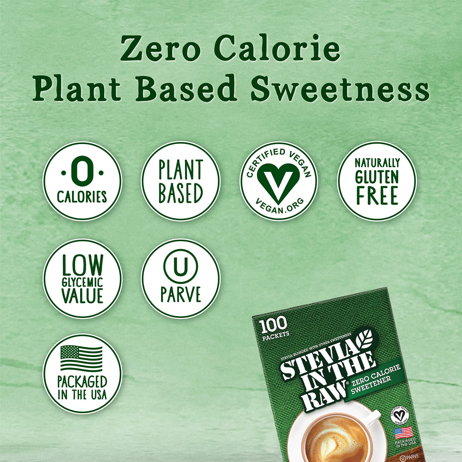 • Plant based, zero calorie sweetener from the leaves of the stevia plant