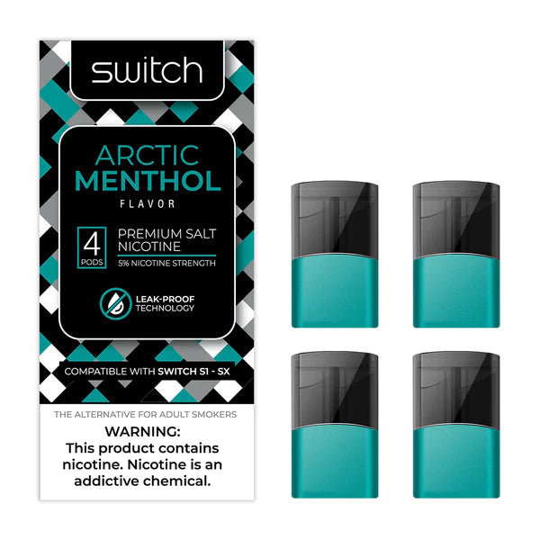 Blasting menthol flavor with unbeatable freshness. Switch e-liquid contains a formulation of 4 ingredients - Propylene Glycol, Glycerol, Flavor and Nicotine. Each Switch S1-SX Pod contains - 0.9mL with 5% nicotine by volume/pod. |