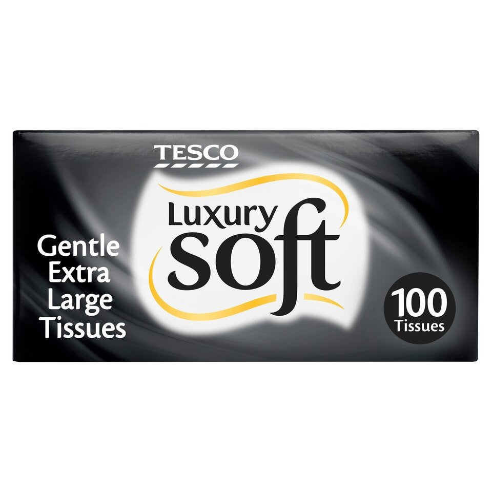 Tesco luxury Soft Extra Large tissues. Tesco luxury Soft Extra Large tissues are beautifully soft and gentle to the touch. Average contents 100 x 2 ply tissues.For softness and strength every timeTesco luxury Soft Extra Large tissues. Tesco luxury Soft Extra Large tissues are beautifully soft and gentle to the touch. Average contents 100 x 2 ply tissues.