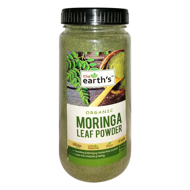The Earths Moringa Leaf Power 150g. Elevate your well-being with The Earths Moringa Leaf Power. Our thoughtfully sourced 150g pack is filled with the purest form of Moringa, known as nature's miracle tree, to nurture your body and mind. Each scoop of this potent superfood offers a rich blend of essential nutrients, including iron, calcium, and vitamins A, E, and C. Incorporating Moringa Leaf Power into your diet can promote energy levels, boost mental clarity, and fortify your immune system. Whether you are a busy professional, an athlete, or someone seeking natural support, this lightweight package can be a convenient addition to your daily nutritional regimen. Experience the intrinsic power of Moringa with The Earths Moringa Leaf Power and embrace a balanced and wholesome lifestyle.