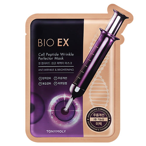 Ultimate premium step-by-step anti-aging wrinkle care "Bio-Xcell Peptide Line" : Contains Treasure of the Mediterranean, Chrithmum maritimum callus culture filtrate, a powerful stem cell that provides skin nutrition care. : EGF (Epidermal Growth Factor-1) restores skin elasticity and produces tight firm skin. : The Fullerene complex helps strengthen skin elasticity and nutrition. : Contains "Botulinum-derived Peptide" component that provides anti-aging care, smoothing out wrinkles. : Mask sheet containing Chrithmum maritimum callus culture filtrate & Botulinum-derived Peptide provides supple and smooth, resilient care increasing skin elasticity |