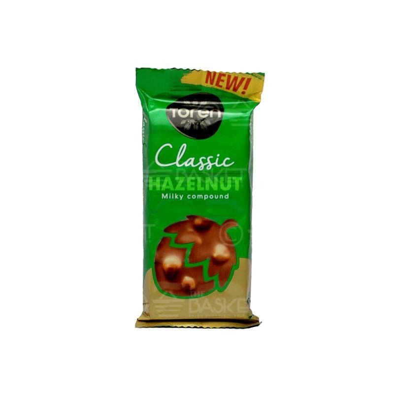 Toren Milky Compound Hazelnut Chocolate is a creamy and nutty chocolate bar. This 52-gram bar combines the goodness of milk chocolate with the crunch of hazelnuts for a delightful snacking experience.