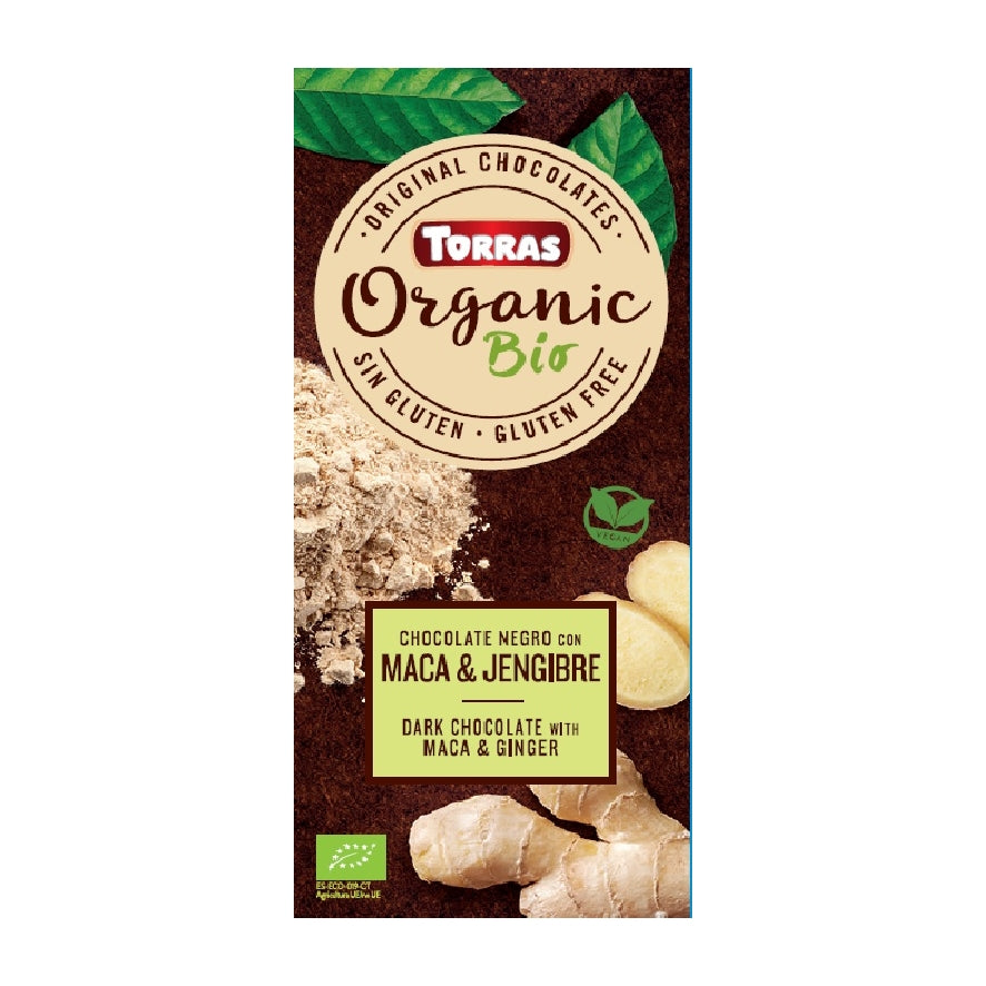 TORRAS ORGANIC BIO MACA & JENGIBRE is a 100-gram product, likely a dietary supplement or natural remedy containing organic maca and ginger.