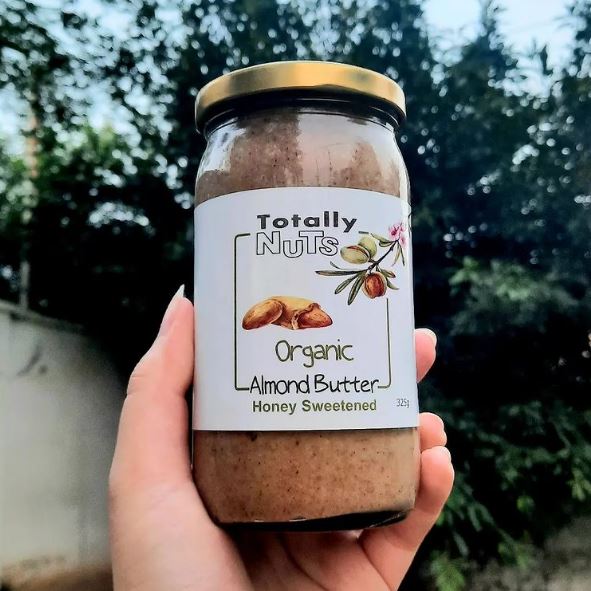 Totally Nuts Organic Almond Butter is a creamy spread made from organic almonds and sweetened with honey. It offers a nutty and naturally sweet flavor that's perfect for spreading on bread or using in recipes.