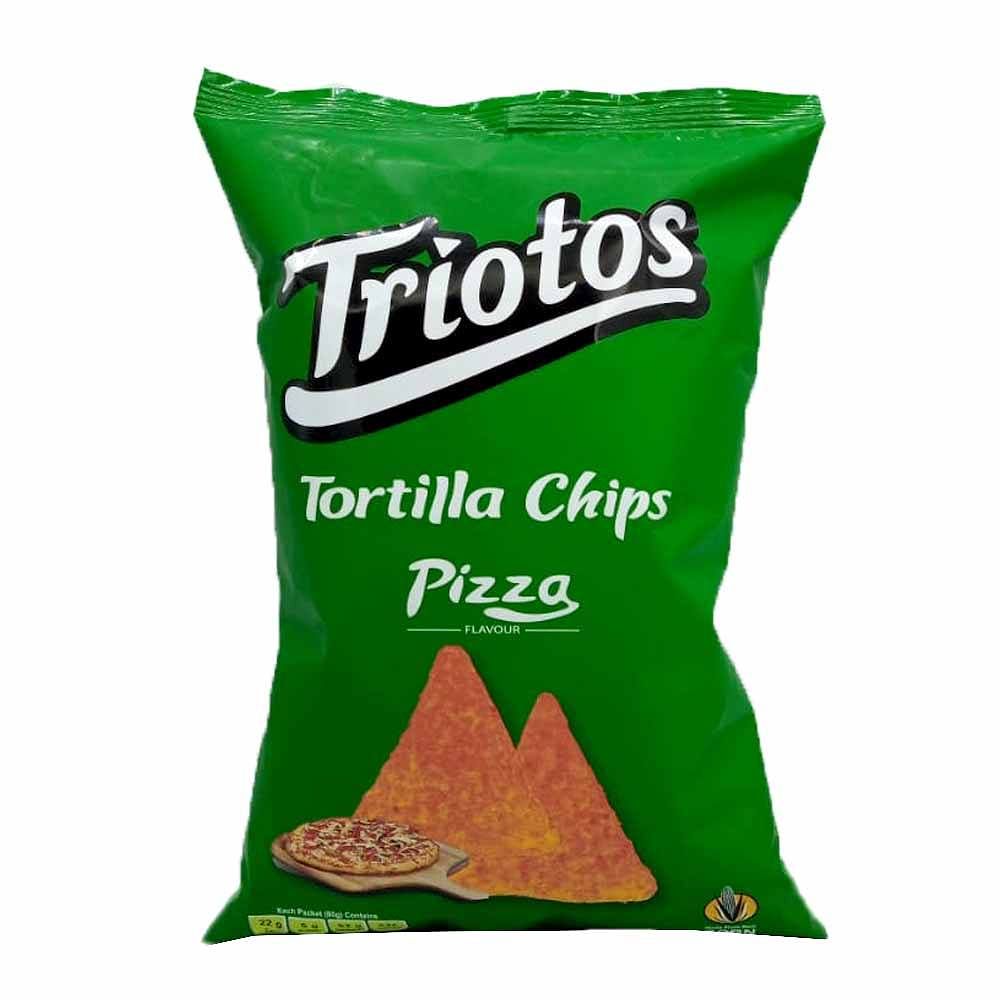 Triotos Tortilla Chips in Pizza flavor provide a delicious snacking option with the taste of pizza in every bite.