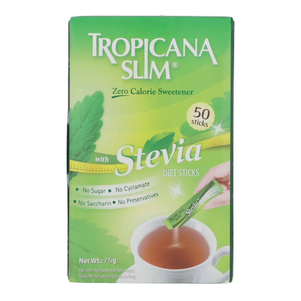 Tropicana Slim Stevia Sweetener is a sweetener contains natural stevia extract. It is extracted from stevia leaves that already used by native tribes in South America for hundred years to naturally sweeten their foods and drinks.