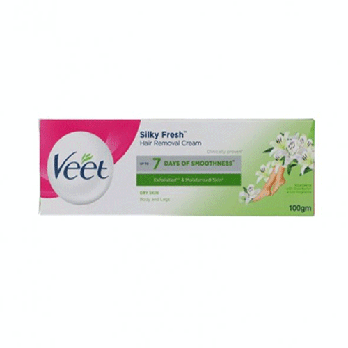 Veet Hair Removal Cream Silk & Fresh Dry Skin 100g: Discover smooth and hair-free skin with Veet Hair Removal Cream Silk & Fresh, now available in a convenient 100g tube. This specialized formula is designed for dry skin and offers a quick and effective way to remove unwanted hair. The cream is enriched with soothing Aloe Vera and Vitamin E to leave your skin feeling silky-smooth and moisturized. Say goodbye to the hassle of shaving and enjoy long-lasting, salon-smooth results in the comfort of your own home.