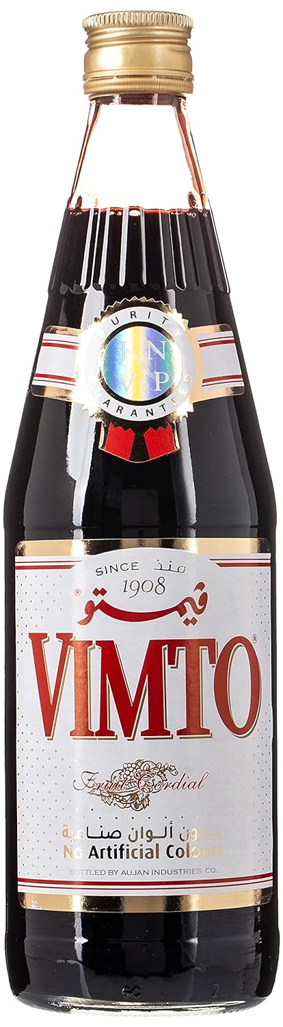 Vimto Fruit Cordial: Vimto is a popular brand known for its fruit cordials and drinks. Fruit cordial is a concentrated syrup made from a combination of fruit flavors, often used to make refreshing beverages. Vimto is known for its unique and fruity flavor, which combines various berries and fruits to create a distinctive taste.