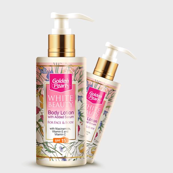 Golden Pearl White Beauty Body Lotion gives you multiple benefits in one package. It is a unique blend with ultra-pure ingredients, including Hyaluronic Acid, Niacinamide, Vitamin E and Vitamin C. Its regular use lightens your overall skin tone, reduces dark spots by minimizing the melanin production.