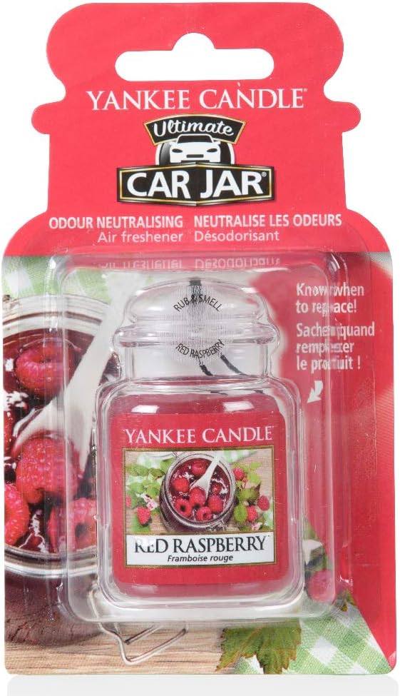 The Yankee Candle Car Jar in the delightful fragrance of Red Raspberry. This compact 15g car air freshener is designed to infuse your vehicle with a long-lasting, invigorating scent. Crafted with utmost care, this product ensures a consistent release of the captivating aroma, creating a pleasant driving experience. The Red Raspberry fragrance, with its sweet and tangy notes, adds a touch of sophistication to your car interior. With its convenient design, the Yankee Candle Car Jar is easily attachable to your car's air vent, ensuring a refreshing ambiance on your journeys. Elevate your driving pleasure with this exquisite car air freshener.