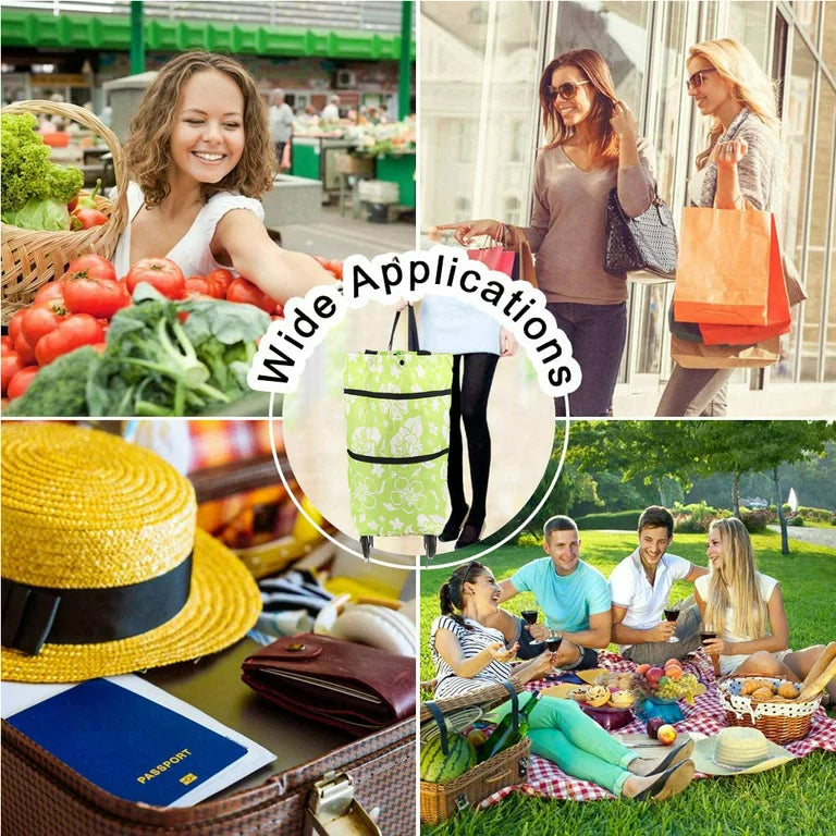 Yirtree Collapsible Trolley Bag Folding Shopping Bag with Wheels Foldable